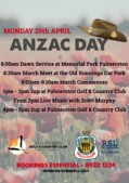 In Palmerston, the morning starts at 4.30am with a gunfire breakfast at Cazalys, followed by a 6am Dawn Service in Memorial Park. This will be followed by a 7.30am breakfast at Cazalys, with the march starting at 8.30am from the old Bunnings carpark.